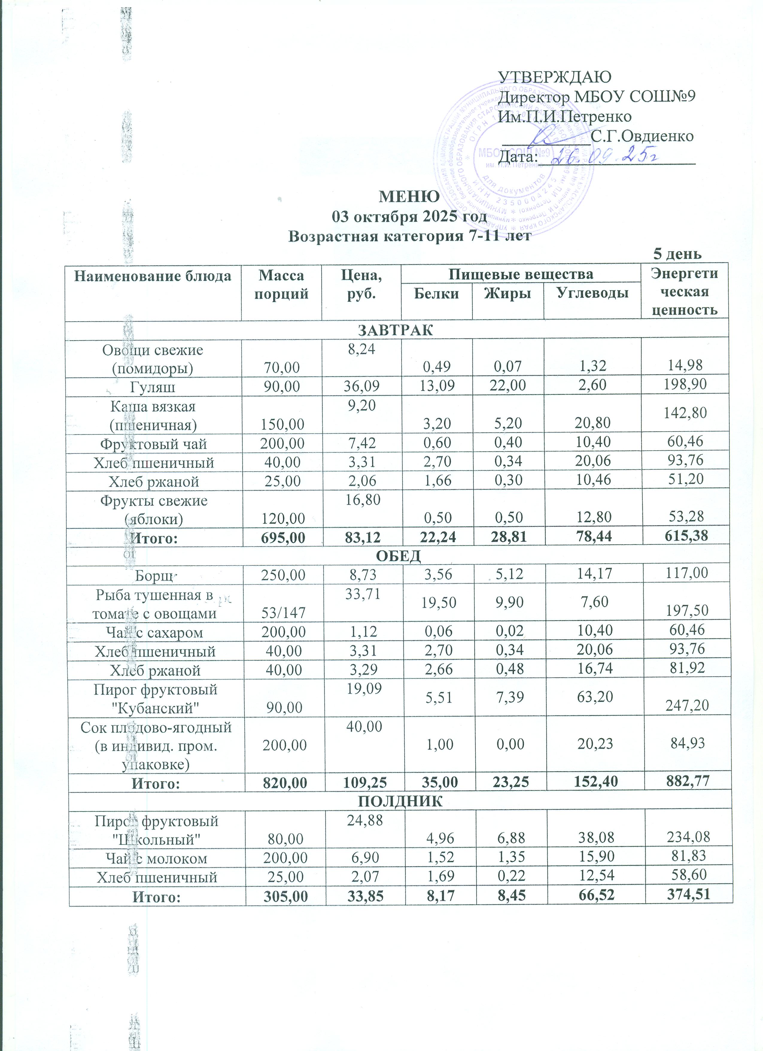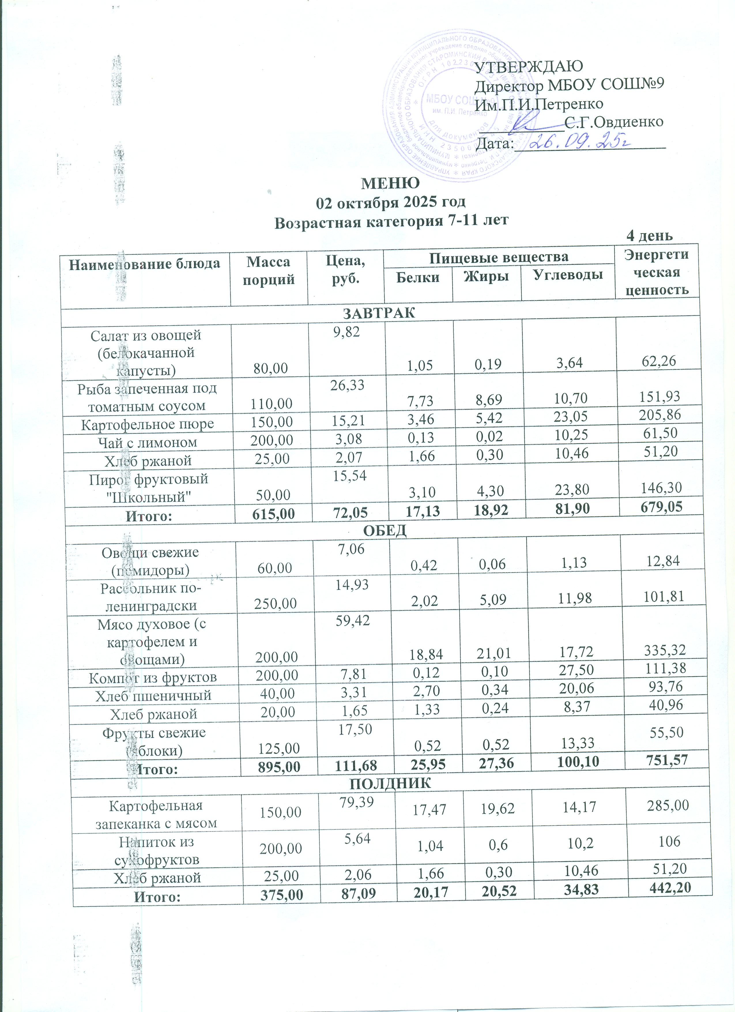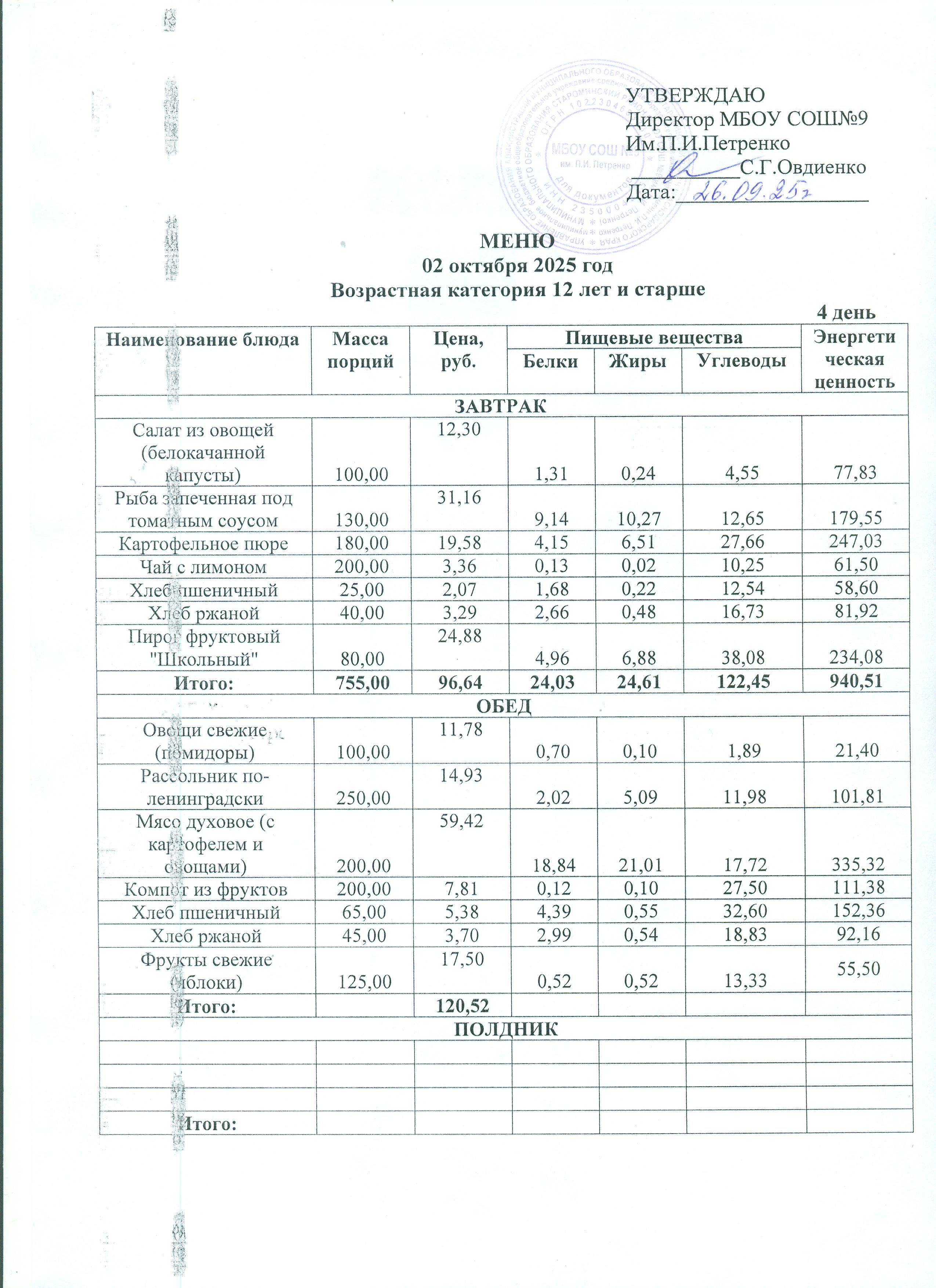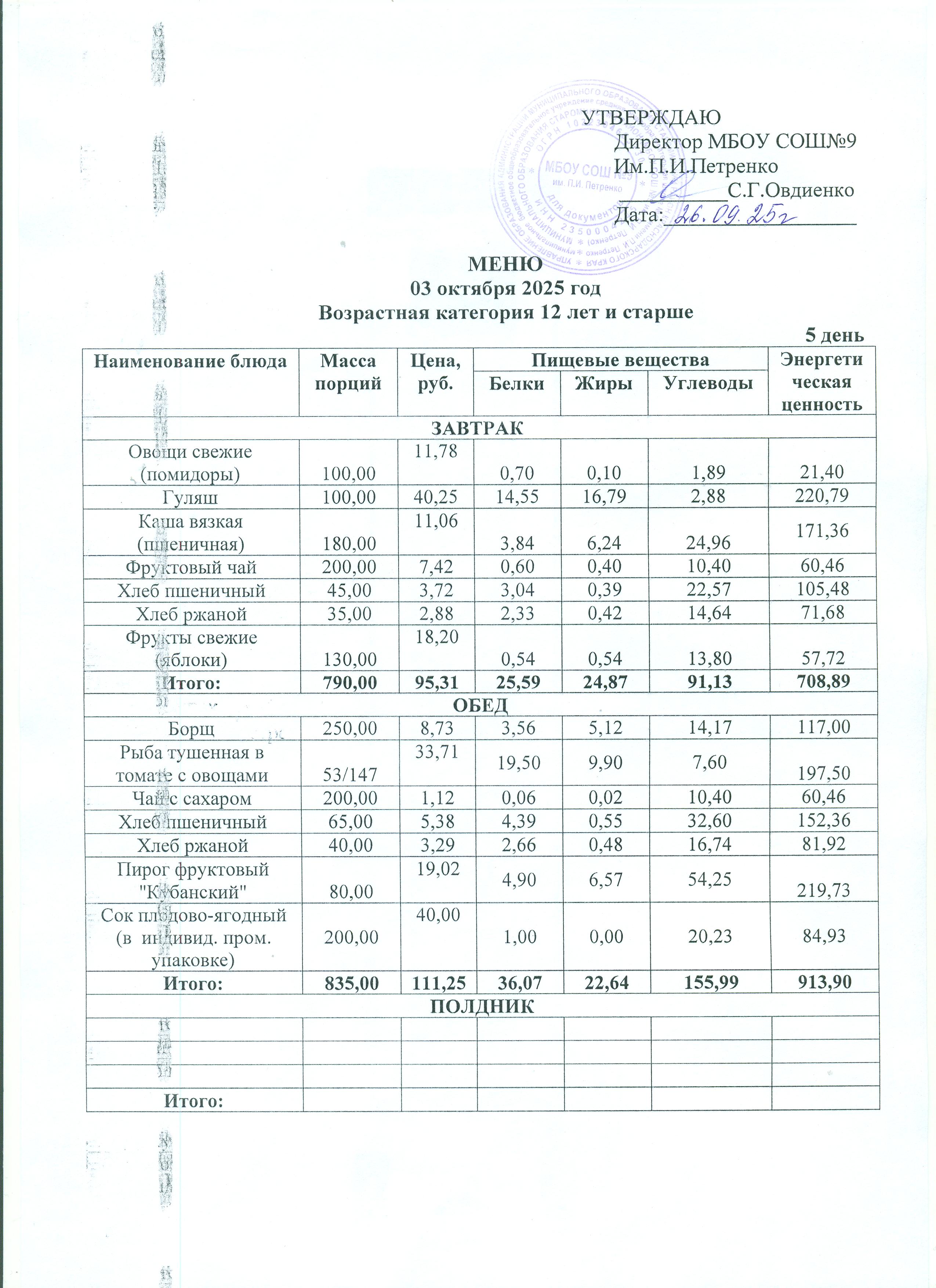 Ежедневное меню школьной столовой сезонное
